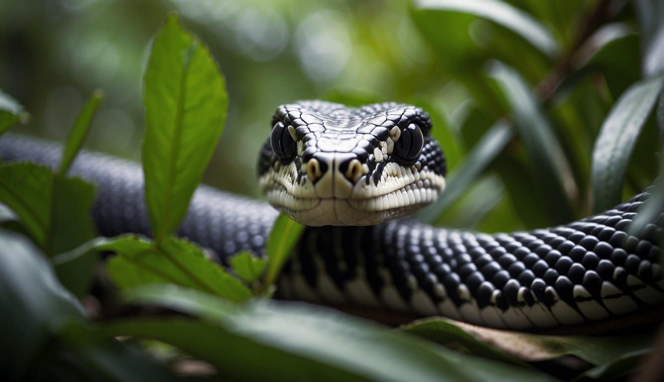 A cobra slithers through the dense jungle, its sharp eyes scanning for prey